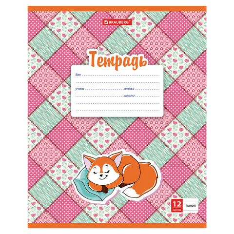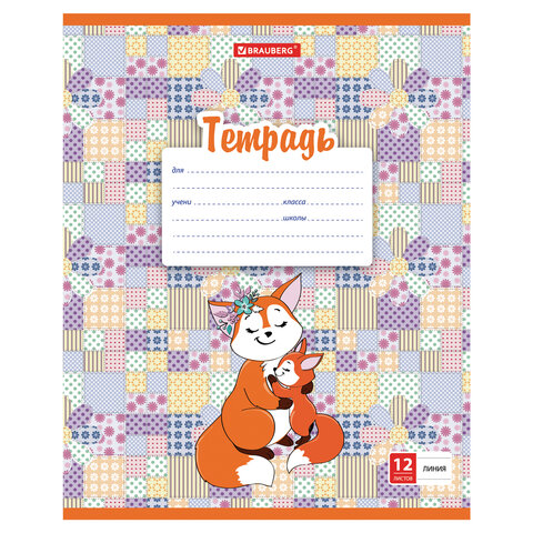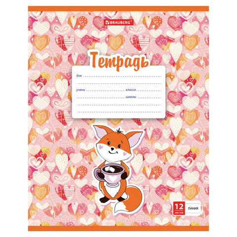 Тетрадь 12 л. BRAUBERG линия, обложка картон, 'УМНЫЙ ЛИСЕНОК', 105628