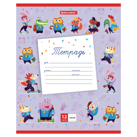 Тетрадь 12 л. BRAUBERG линия, обложка картон, 'ZOO', 105629