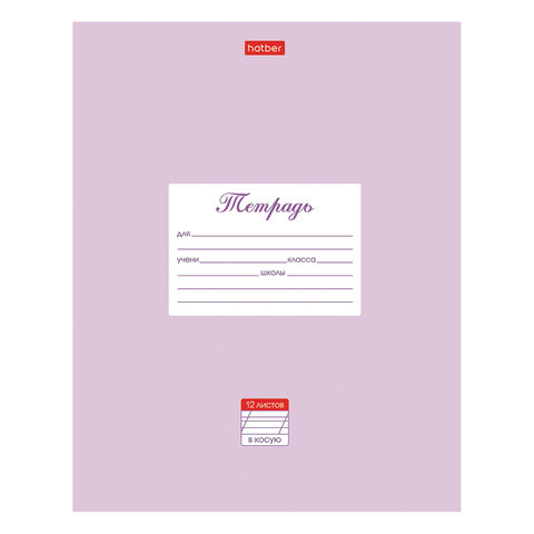 Тетрадь 12 л., HATBER, косая линия С ДОПОЛНИТЕЛЬНОЙ ГОРИЗОНТАЛЬНОЙ, 'Пастель-сиреневая', 12Т5В6_0515