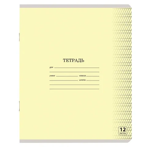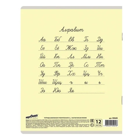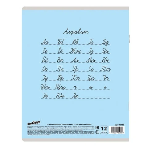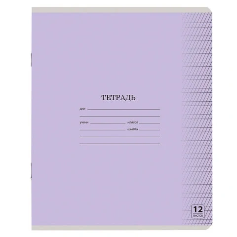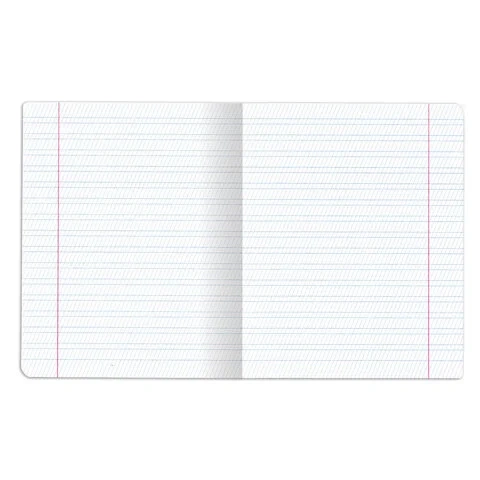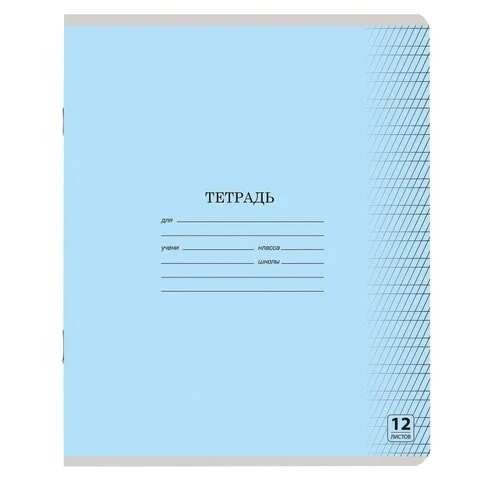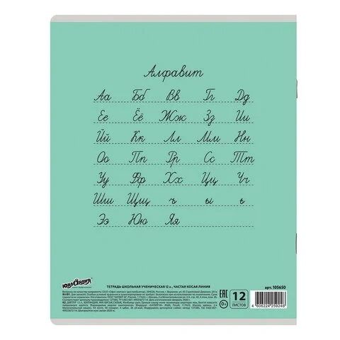 Внутренний блок плотностью 60 г/м2 из офсетной бумаги содержит 12 листов. Линовка - частая косая линия с полями. Обложка изготовлена из импортного мелованного картона. Скрепка надежно скрепляет листы между собой.