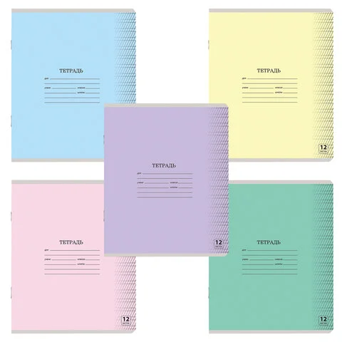 Тетрадь 12 л. ЮНЛАНДИЯ КЛАССИЧЕСКАЯ, частая косая линия, обложка картон, АССОРТИ 5 видов, 105650