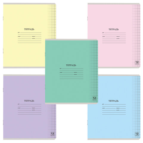 Тетрадь 12 л. ЮНЛАНДИЯ КЛАССИЧЕСКАЯ, клетка, обложка картон, АССОРТИ 5 видов, 105636, 31