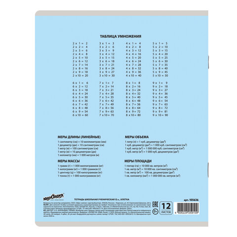 Внутренний блок плотностью 60 г/м2 из офсетной бумаги содержит 12 листов. Линовка - клетка с полями. Обложка изготовлена из импортного мелованного картона. Скрепка надежно скрепляет листы между собой.