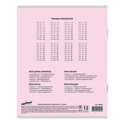 Тетрадь 12 л. ЮНЛАНДИЯ КЛАССИЧЕСКАЯ, клетка, обложка картон, РОЗОВАЯ, 105641