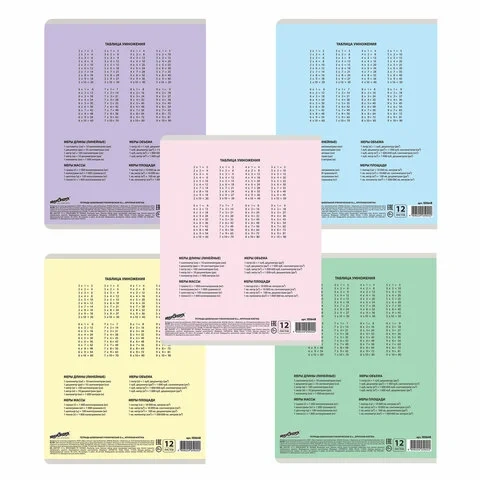 Тетрадь 12 л. ЮНЛАНДИЯ КЛАССИЧЕСКАЯ, крупная клетка, обложка картон, АССОРТИ 5 видов, 105648