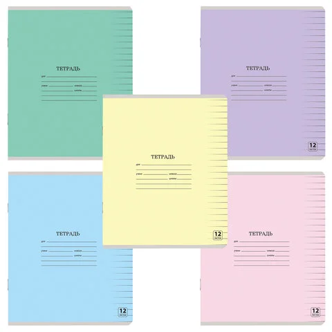 Тетрадь 12 л. ЮНЛАНДИЯ КЛАССИЧЕСКАЯ, линия, обложка картон, АССОРТИ 5 видов, 105642