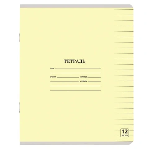Внутренний блок плотностью 60 г/м2 из офсетной бумаги содержит 12 листов. Линовка - линия с полями. Обложка изготовлена из импортного мелованного картона. Скрепка надежно скрепляет листы между собой.