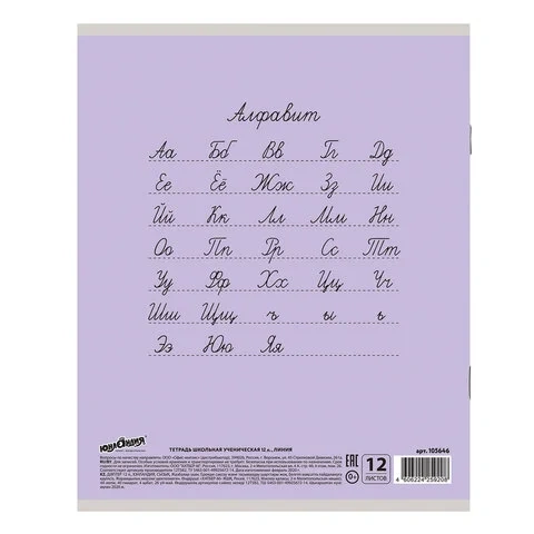 Тетрадь 12 л. ЮНЛАНДИЯ КЛАССИЧЕСКАЯ, линия, обложка картон, СИРЕНЕВАЯ, 105646