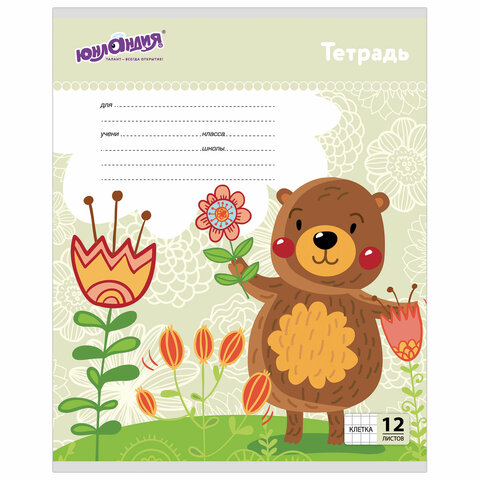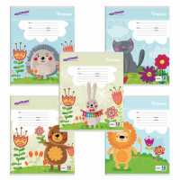 Тетрадь 12 л. ЮНЛАНДИЯ клетка, обложка картон, 'ЗВЕРЯТА', 105624