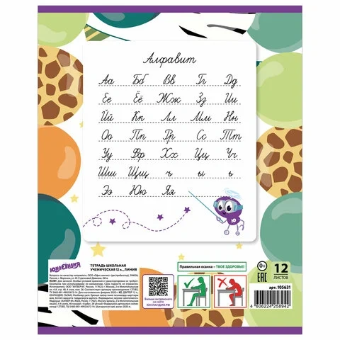 Тетрадь 12 л. ЮНЛАНДИЯ линия, обложка картон, 'АФРИКА', 105631