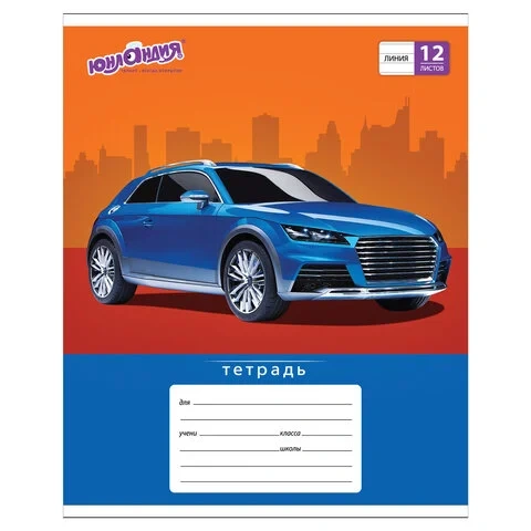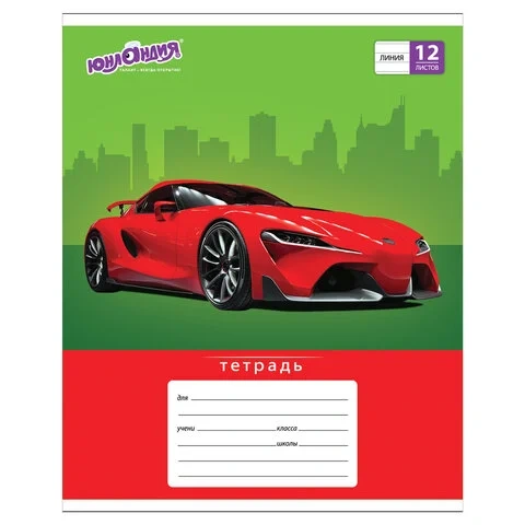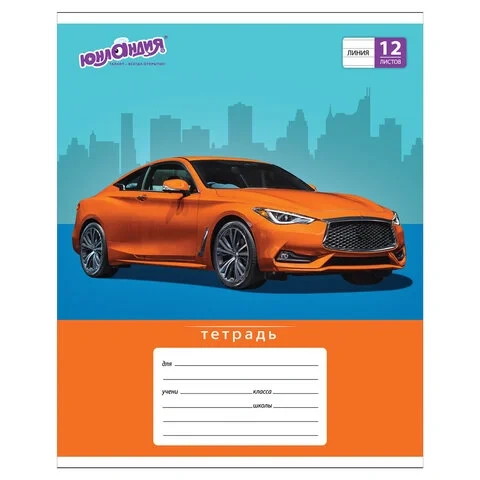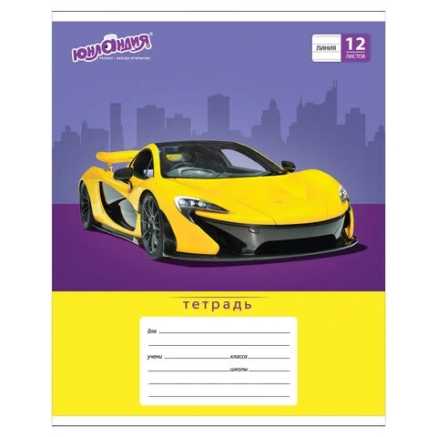 Тетрадь 12 л. ЮНЛАНДИЯ линия, обложка картон, 'АВТО-КЛАСС', 105634