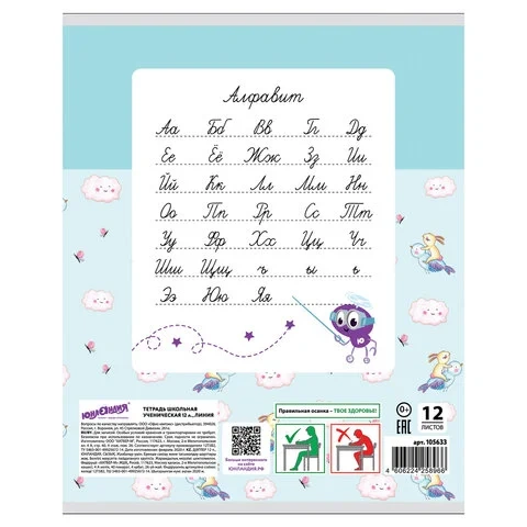 Тетрадь 12 л. ЮНЛАНДИЯ линия, обложка картон, 'ЕРАЛАШ', 105633