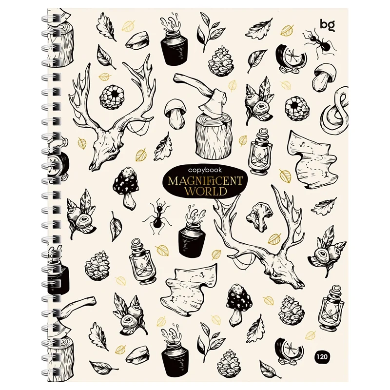 Тетрадь BG серии Magnificent World формата А5 (165*205 мм) на гребне состоит из 120 листов и отлично подходит для конспектов, работы и ведения документооборота. Внутренний блок – офсетная бумага плотностью 60 г/м?, белизна – 100%, линовка – клетка без полей. Твёрдая обложка тетради изготовлена из мелованного картона с матовой ламинацией и тиснением фольгой. Обложка выполнена в современном универсальном ярком дизайне.