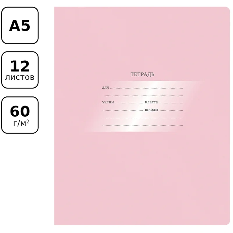 Тетрадь 12л., косая линия BG 'Первоклассная', светло-розовая