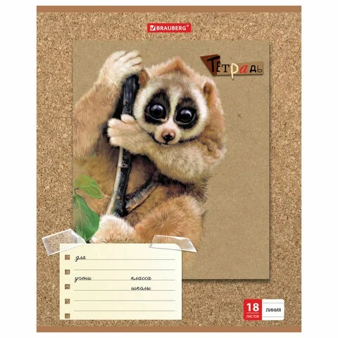 Тетрадь 18 л. BRAUBERG линия, обложка картон, 'МИЛЫЕ ЗВЕРУШКИ', 403580
