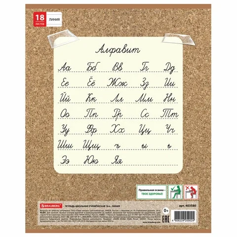 Внутренний блок плотностью 60 г/м2 из офсетной бумаги содержит 18 листов. Белизна - 100%. Линовка - линия с полями. Обложка изготовлена из импортного мелованного картона. Скрепка надежно скрепляет листы между собой. Поставляется в нескольких вариантах дизайна без возможности выбора.