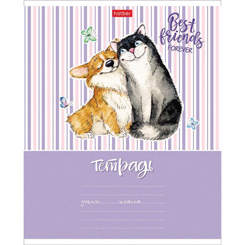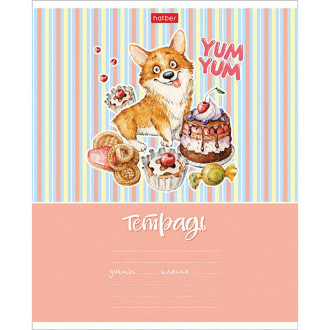 Тетрадь 18 л. HATBER клетка, обложка картон, 'Из жизни корги' (5 видов в спайке),18Т5В1