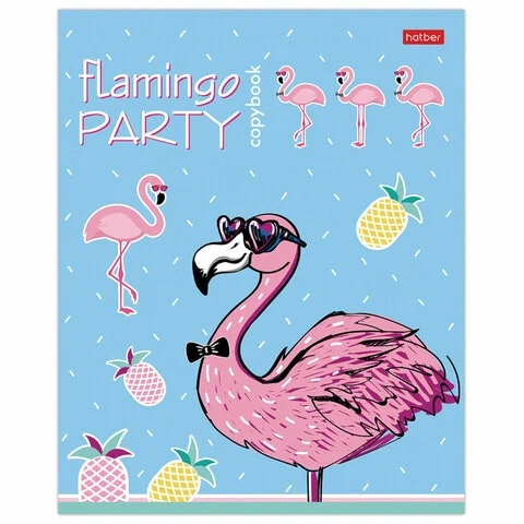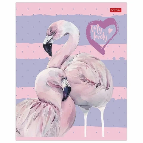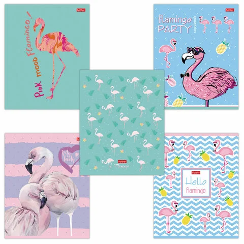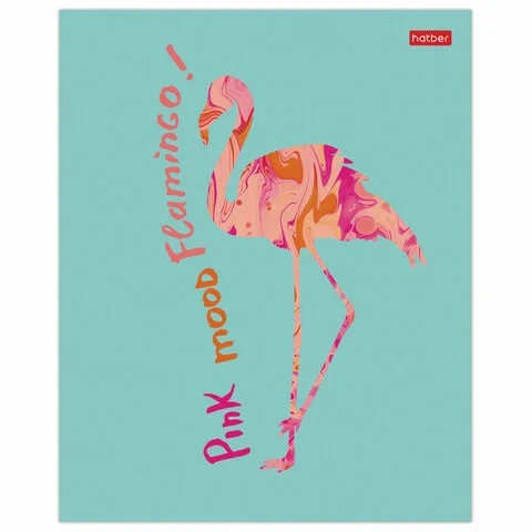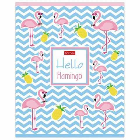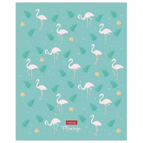 Тетрадь 18 л. HATBER скоба, клетка, обложка картон, тиснение, 'Фламинго' (5 видов в спайке), 18Т5тВ1