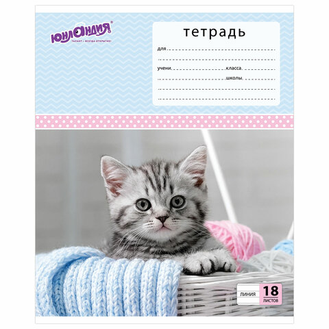Тетрадь 18 л. ЮНЛАНДИЯ линия, обложка картон, 'КОТИКИ', 403583
