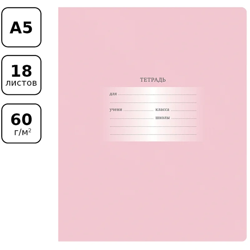 Тетрадь 18л., клетка BG 'Первоклассная', светло-розовая
