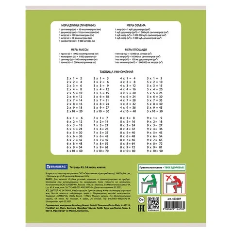 Внутренний блок плотностью 60 г/м2 из офсетной бумаги имеет линовку с полями. Обложка изготовлена из импортного мелованного картона. Скрепка надежно скрепляет листы между собой.