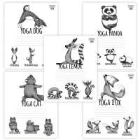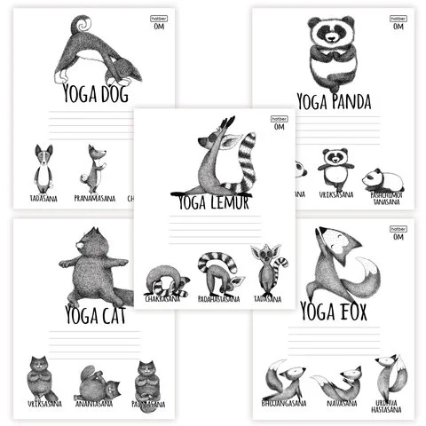 Тетрадь 24 л., HATBER, клетка, обложка картон, 'Animals Yoga' (5 видов), 24Т5В1