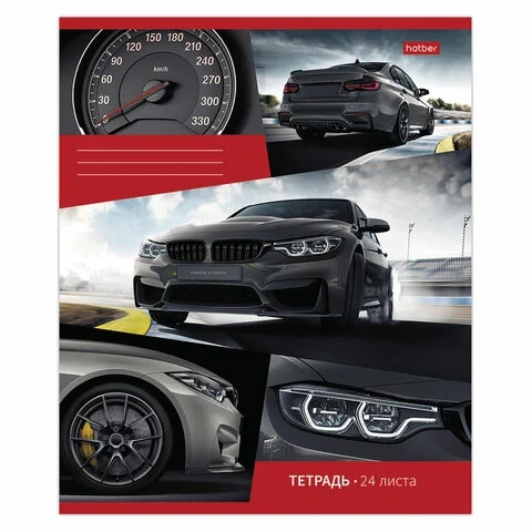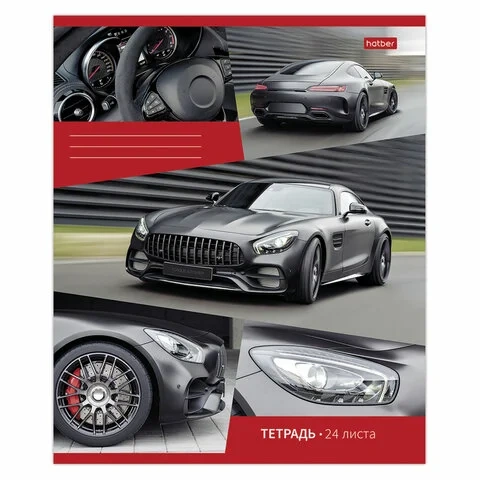 Тетрадь 24 л. HATBER скоба, клетка, обложка картон, 'Автопанорама' (5 видов в спайке), 24Т5В1