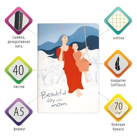 Общая тетрадь формата А5 содержит 40 листов с линовкой в клетку. Сшивка плотно соединяет листы. Обложка изготовлена из высококачественного импортного картона с двусторонней запечаткой, что придает тетради изысканный и неповторимый стиль. Специальное покрытие 'SoftTouch' с повышенными тактильными свойствами придает обложке мягкий, бархатистый эффект. Внутренний блок - тонированная офсетная бумага цвета слоновой кости плотностью 70 г/м2.