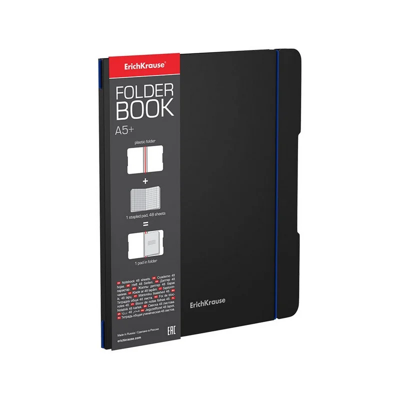 Тетрадь общая ученическая формата А5+ (170x203 мм) со сменным блоком FB Solution в пластиковой обложке. В комплект входит одна тетрадь 48 листов на скобе в клетку с полями. Удобная система крепления на резинке дает возможность быстрой замены тетрадей, а фиксирующая резинка предотвращает нежелательное раскрытие. Эргономичный дизайн: специальные выемки на обложке облегчают перелистывание. Обложка из высококачественного износостойкого матового пластика с фактурой «песок». Бумага офсетная плотностью 60 г/м2. Цвет линовки — синий. Скругленные уголки обложки и блока. Рекламный вкладыш с информацией о товаре. Тетради упакованы в пакет по 4 штуки. Сменные блоки FB Solution можно купить отдельно, но также для данной обложки подойдет любая тетрадь на скобе А5+ ErichKrause.
