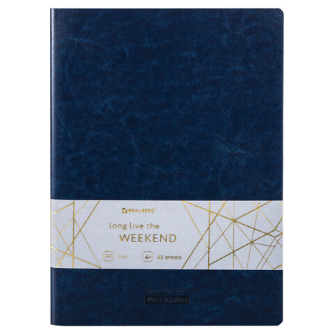Тетрадь 48 л. в линию обложка гладкий кожзам, сшивка, A5 (147х210мм), ТЕМНО-СИНИЙ, BRAUBERG VIVA, 40