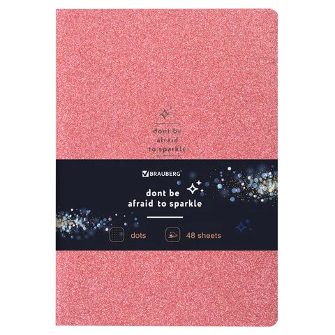 Тетрадь 48 л. в точку обложка кожзам с блестками, сшивка, A5 (147х210мм), РОЗОВЫЙ, BRAUBERG SPARKLE,