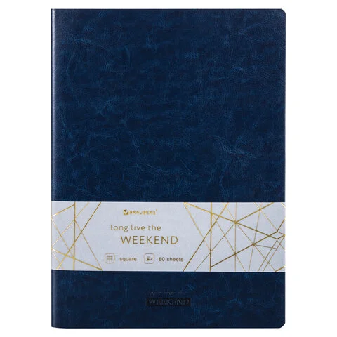 Тетрадь 60 л. в клетку обложка гладкий кожзам, сшивка, А4 (210х297мм), ТЕМНО-СИНИЙ, BRAUBERG VIVA, 4