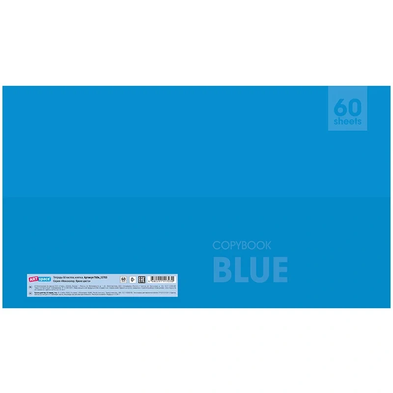 Тетрадь общая формата А5 (165*205 мм) на скобе, 60 листов. Внутренний блок – офсет 60 г/м?, белизна 100%, клетка с полями. Обложка изготовлена из импортного целлюлозного мелованного картона, отделка обложки – водный лак.