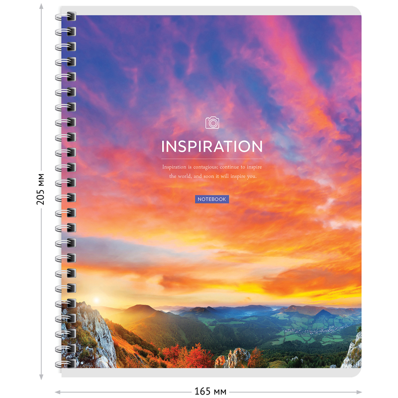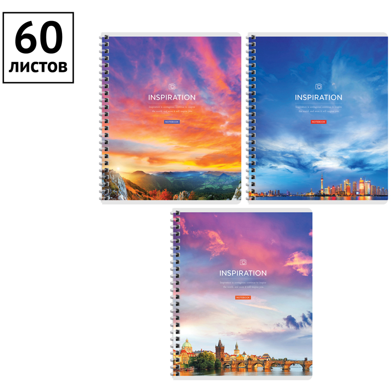 Тетрадь общая 60 л. на гребне, формата А5 (165*205 мм). Внутренний блок – офсет 60 г/м?, белизна 100%, клетка. Обложка изготовлена из импортного целлюлозного мелованного картона, отделка обложки – глянцевый УФ-лак.