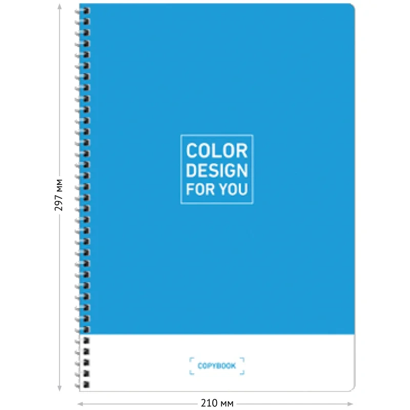 Тетрадь общая 80 л. на гребне, формата А4 (210*297 мм). Внутренний блок – офсет 60 г/м?, белизна 100%, клетка. Обложка изготовлена из импортного целлюлозного мелованного картона, отделка обложки – водный лак.