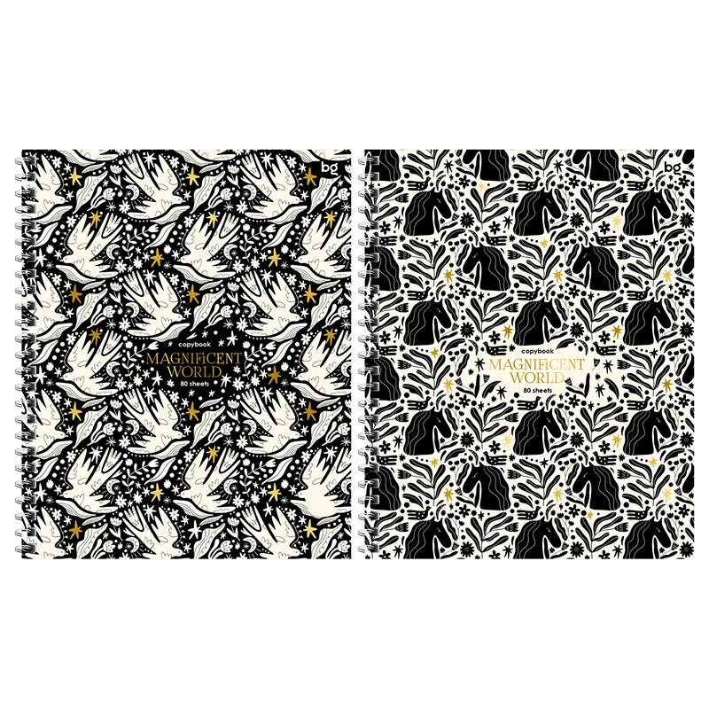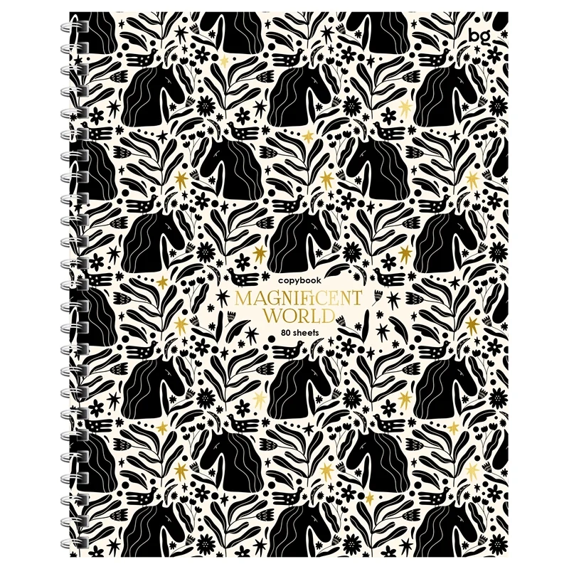 Тетрадь 80л., А5, клетка на гребне BG 'Magnificent World', матовая ламинация, тиснение фольгой, твер