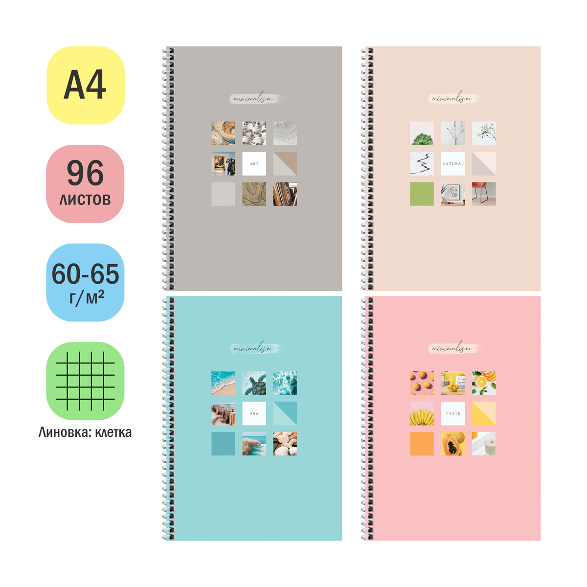 Тетрадь 96л., А4, клетка на гребне ArtSpace 'Стиль. Minimalism', глянцевая ламинация, твердая обложк