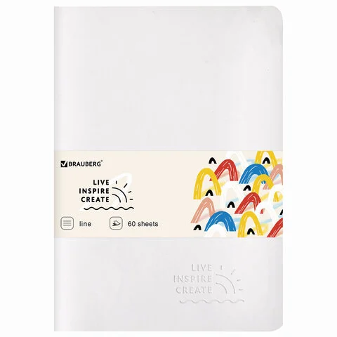 Тетрадь 60 л. в линию обложка кожзам SoftTouch, сшивка, B5 (179х250мм), БЕЛЫЙ, BRAUBERG RAINBOW, 403