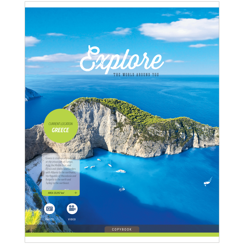 Тетрадь в клетку. Внутренний блок – офсет 60 г/м?, 80% белизны. Обложка – мелованный картон. Объем блока – 96 л. Формат А5