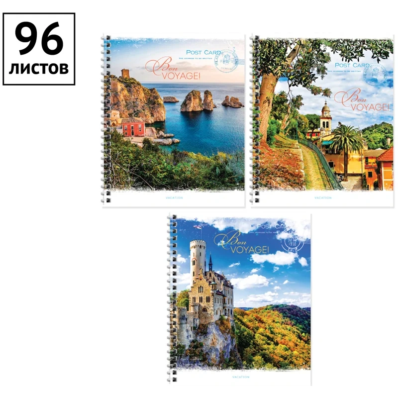 Тетрадь 96л., А5, клетка на гребне ArtSpace 'Путешествия. Bon voyage', ВД-лак