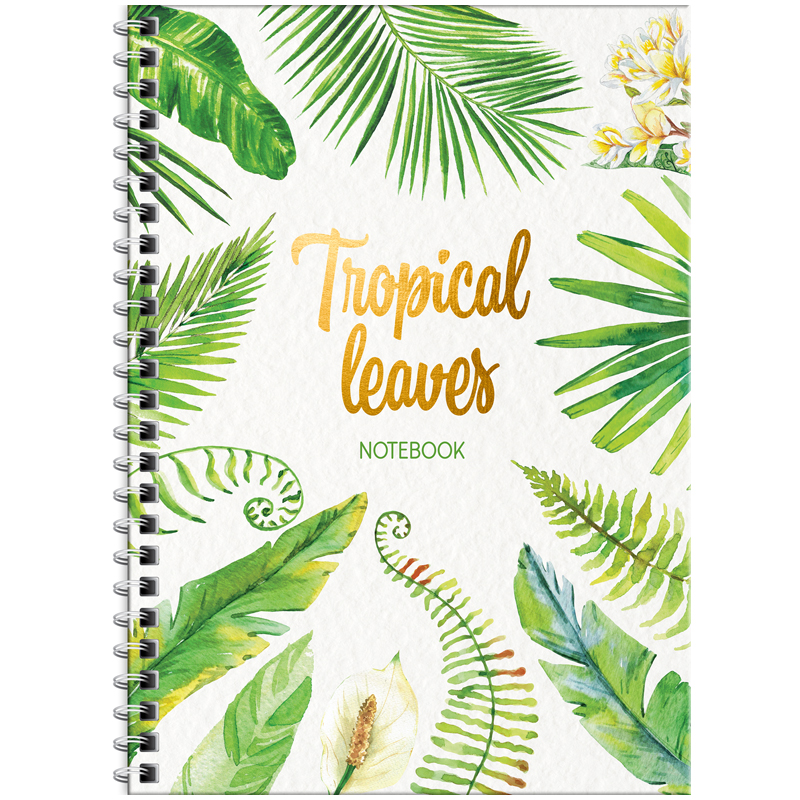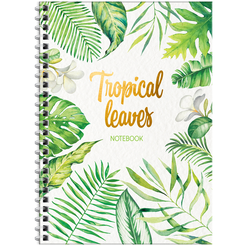 Тетрадь 96л., А5, клетка на гребне ArtSpace 'Стиль. Tropical leaves', глянц. лам., тисн.фол, тв.обл.