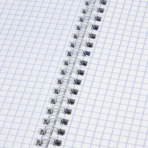 Внутренний блок содержит 120 листов офсетной бумаги плотностью 65 г/м2. Обложка изготовлена из мелованного картона. Линовка – клетка. Евроспираль надежно скрепляет листы между собой. Белизна – 100%. Формат А4.