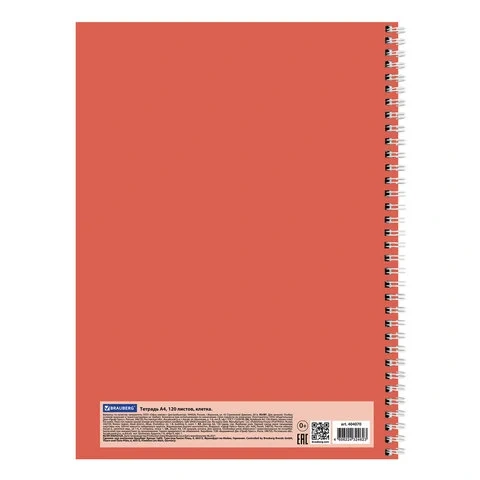 Внутренний блок содержит 120 листов офсетной бумаги плотностью 65 г/м2. Обложка изготовлена из мелованного картона. Линовка - клетка. Евроспираль надежно скрепляет листы между собой. Белизна - 100%. Формат А4.