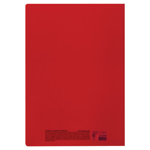 Тетрадь А4, 40 листов, BRAUBERG 'Metropolis', скоба, клетка, обложка пластик, КРАСНЫЙ, 403401