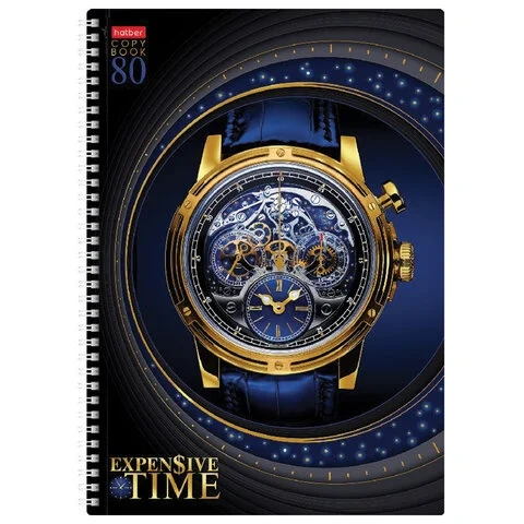 Тетрадь А4, 80 л., HATBER гребень, клетка, 3D фольга, 'TIME' (2 вида в спайке), 80Т4лофлВ1гр