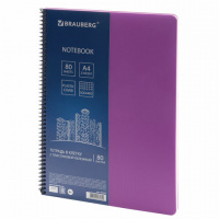 Тетрадь А4, 80 листов, BRAUBERG 'Metropolis', спираль пластиковая, клетка, обложка пластик, ФИОЛЕТОВ