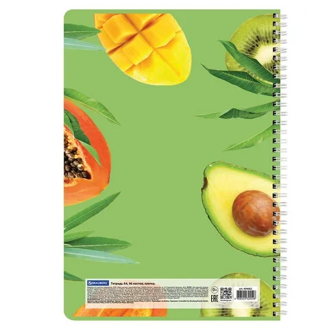 Тетрадь А4, 96 л., BRAUBERG, гребень, клетка, матовая ламинация, 'Exotic', 404062