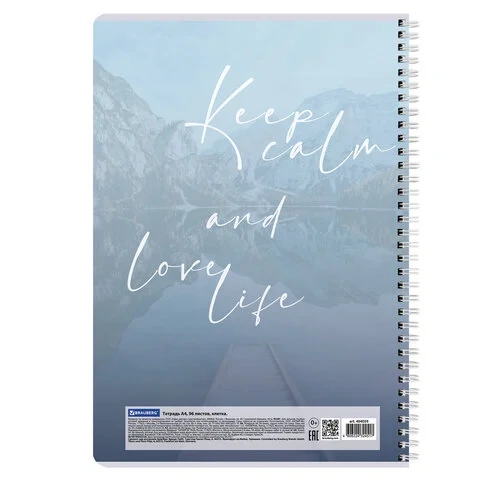 Тетрадь А4, 96 л., BRAUBERG, гребень, клетка, обложка картон, 'Calm', 404059