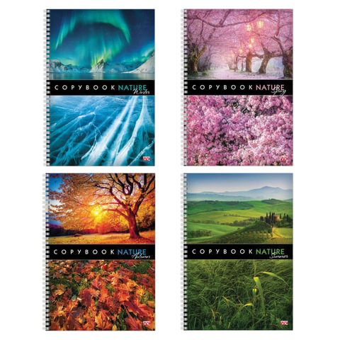 Тетрадь А4, 96 л., HATBER VK, гребень, клетка, обложка картон, 'ПЕЙЗАЖИ' (4 вида), 96Т4C3гр, T240489