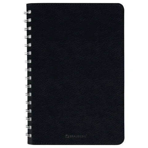 Тетрадь А5 (148x218 мм), BRAUBERG 'Office PRO', под кожу, гребень, 80 л., черная, 111046